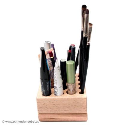 --“SISI – die Ordnung im Badezimmer”-- hilft ein für alle mal aufzuräumen im Badezimmer. Sechs verschiedene Modelle aus der Serie bieten Lösungen für nahezu jedes erdenkliche Produkt im Badezimmer. --IDA-- Entworfen für __Wimperntusche, Kajal, Pinsel, Concealer und Make-Up__. Anzahl der Bohrungen: 1 Bohrung Ø 35mm / 8 Bohrungen Ø 20mm / 7 Bohrungen Ø 10mm Ein Sisi-Modell besteht aus einem Ober- und einem Unterteil. Diese beiden sind magnetisch miteinander verbunden und können so zur leichten Renigung leicht von einander getrennt und wieder verbunden werden. Die Aufnahmelöcher in den Sisi-Modellen sind alle durchgebohrt. Das bedeutet, dass der Schmutz durch das Loch auf das Unterteil fällt. Jedes Unterteil passt zu jedem Oberteil, sind also untereinander austauschbar. SISI wird in einer Box geliefert, mit Produktbildern und kurzer Erklärung zum Produkt.