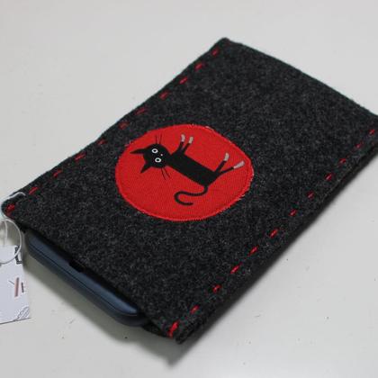 Handyhülle, Brillenetui aus Wollfilz, Katze schwarz