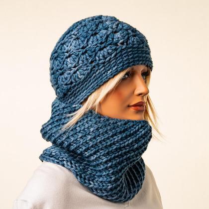 Set aus Haube und Loop - handgefertigt aus bester, handgefärbter Merino-Schurwolle.
