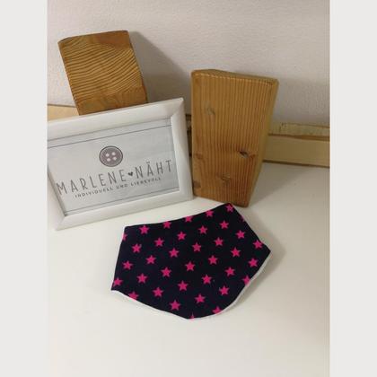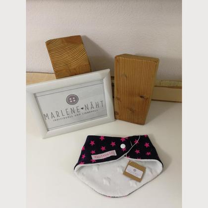 wunderschönes Babyhalstuch in Dreieckform mit einem Druckknopf zum Schließen, liebevoll gefertigt aus Baumwolljersey mit Sternenmuster und weichem, weißen Fleecestoff, beidseitig tragbar, für Babies von 0 - 6 Monaten geeignet (Halsweite ca. 36 cm)