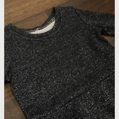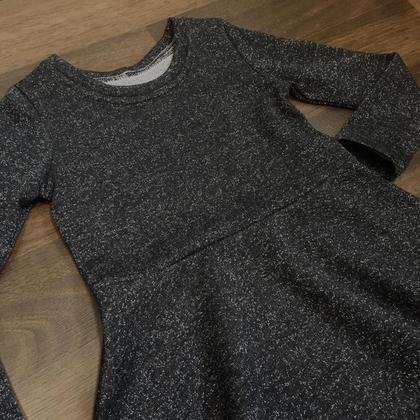Wunderschönes, glitzerndes Kleid aus Bio-Baumwoll-Sweat. Wunderbare Stoffqualität! Oberteil und Ärmel sind eher schmal geschnitten dazu ein weiter, schwingender Rock.