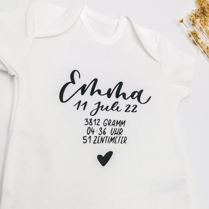 Die Bodys werden alle liebevoll von mir selbst erstellt, mit meiner eigenen Handschrift verschönert und ganz individuell nach deinen Wünschen personalisiert. Der Babybody ist somit ein Unikat und ein entzückendes Erinnerungsstück an die Geburt. Das Besondere daran ist: selbst wenn das kleine Wunder aus dem Body wächst, kann dieser als Erinnerung an den wunderschönen Tag bleiben.
