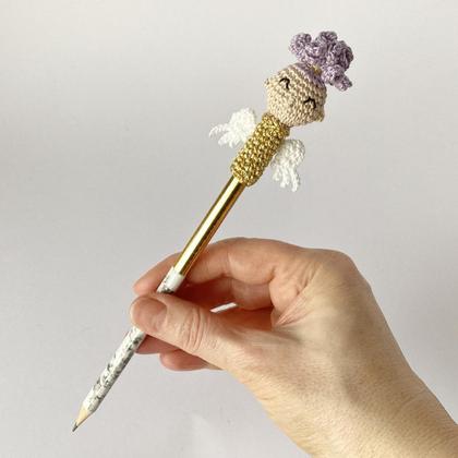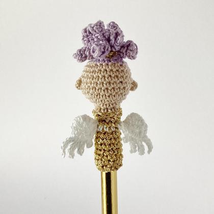 Handgemachter Engel Aufsatz in Flieder, Weiß und Gold