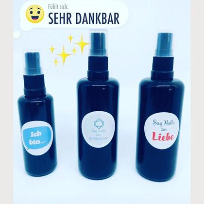 Vergnügtheit, Spass, Fröhlichkeit, Entzücken.....kann ansteckend wirken ;-) ob im Büro, für den Morgenmuffel, im Alltag, zu Hause, im Auto, vor bzw. nach einem Gespräch, der Wunderspray sorgt überall für gute Laune. Du musst ihn nur noch sprühen, in und um deine Aura, als Raumspray, auf dein Lieblingskissen usw.