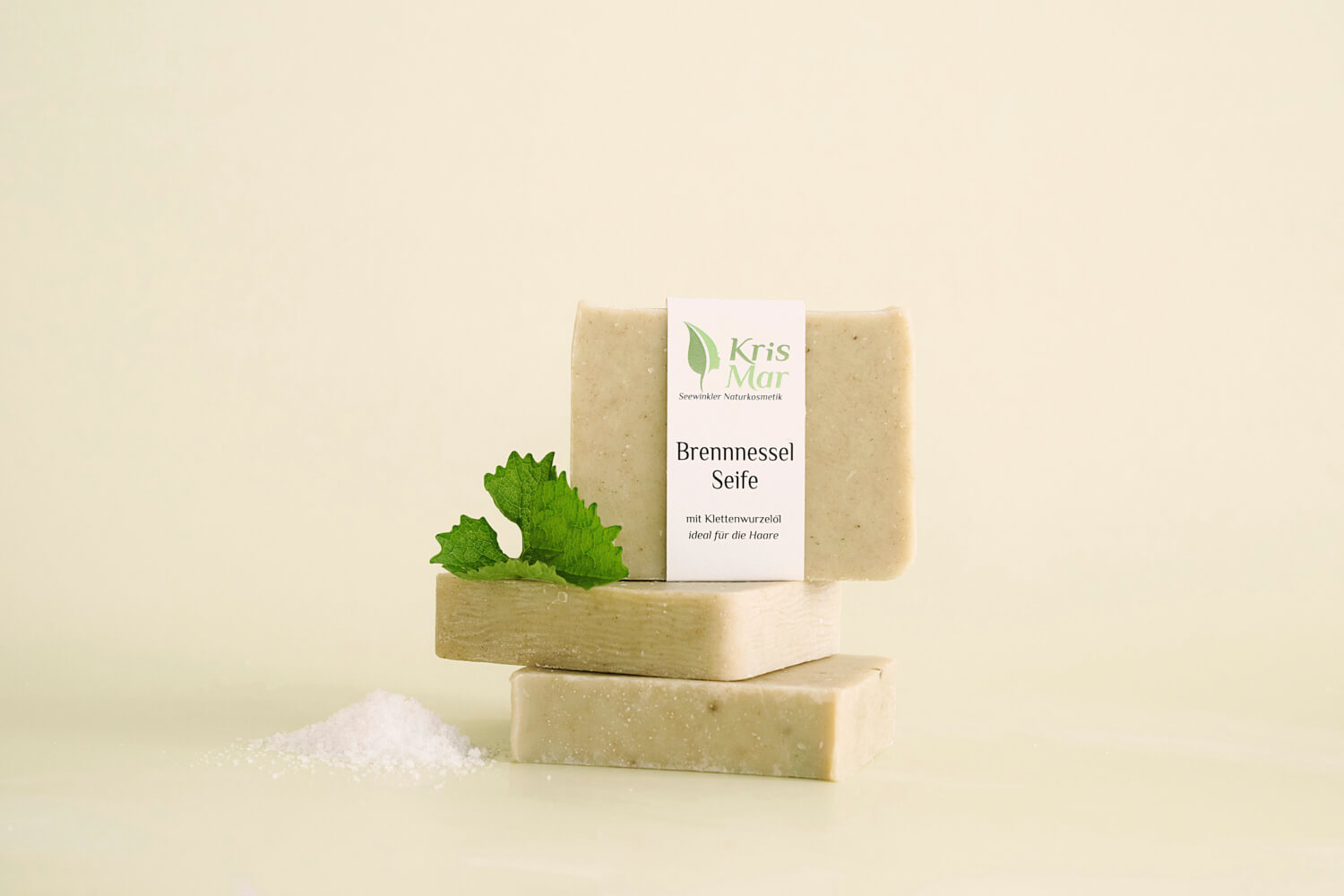 Unsere Haarseife Brennnessel vereint die revitalisierende Kraft der Brennnessel mit wertvollen Ölen und Buttern. Sie schenkt Ihrem Haar neuen Glanz und pflegt es intensiv von der Wurzel bis zur Spitze.