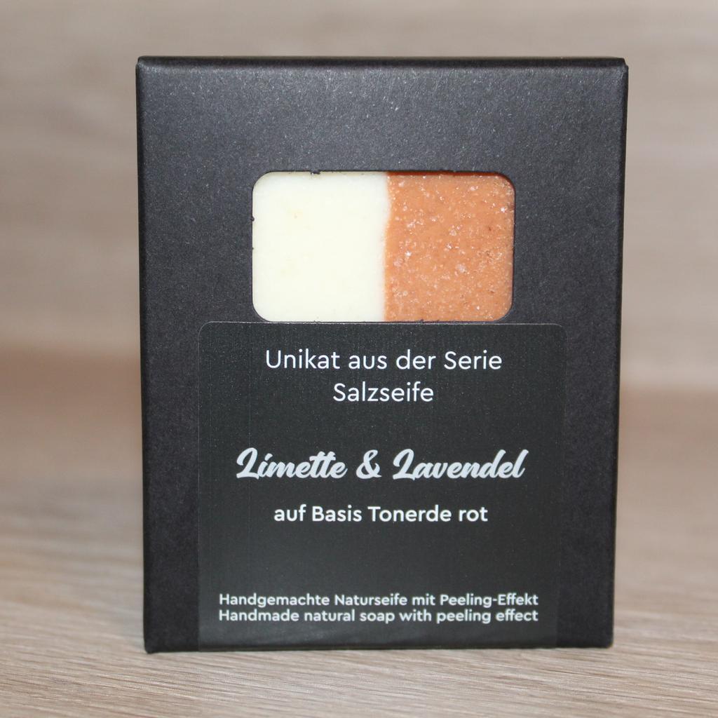 Naturseife Salzseife Limette & Lavendel mit Tonerde rot, Peelingseife