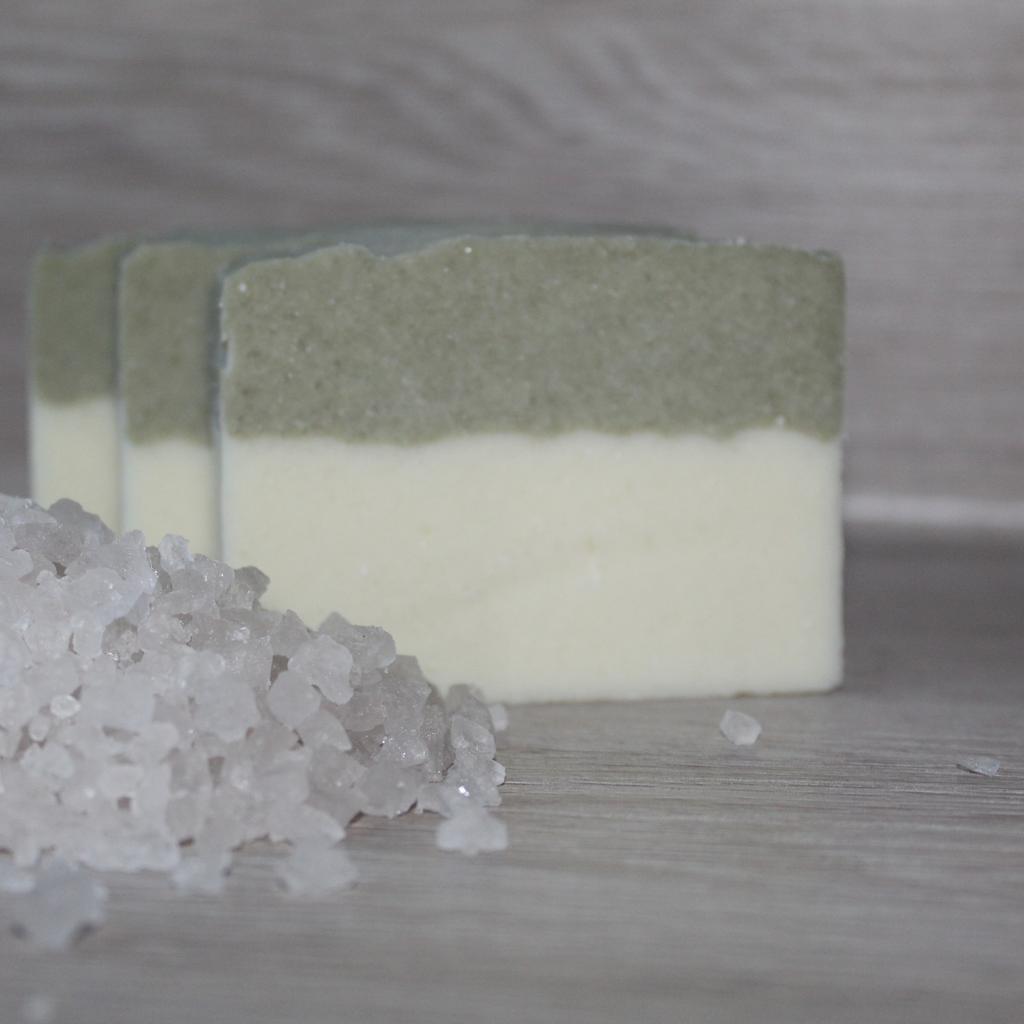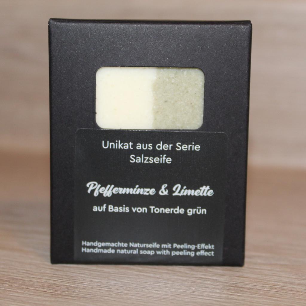 Naturseife Salzseife Pfefferminze & Limette mit Tonerde grün, Peelingseife