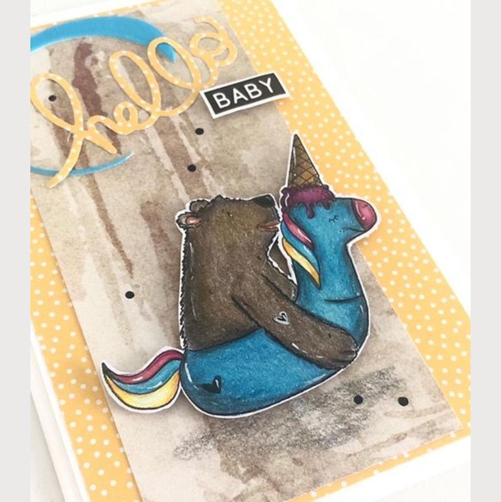 Süße Glückwunschkarte zum Baby mit viel Liebe zum Detail von mir gestaltet und das Bärchen selbst coloriert. Inkl. Kuvert