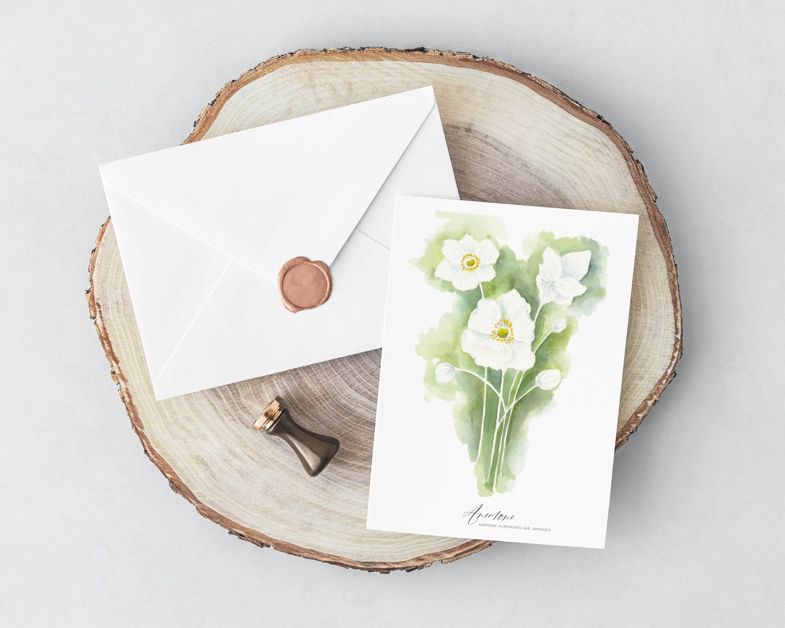 Sie bekommen 1 Stück eines Aquarell-Grußkartes von einem Druck meiner handgemalten Anemone.