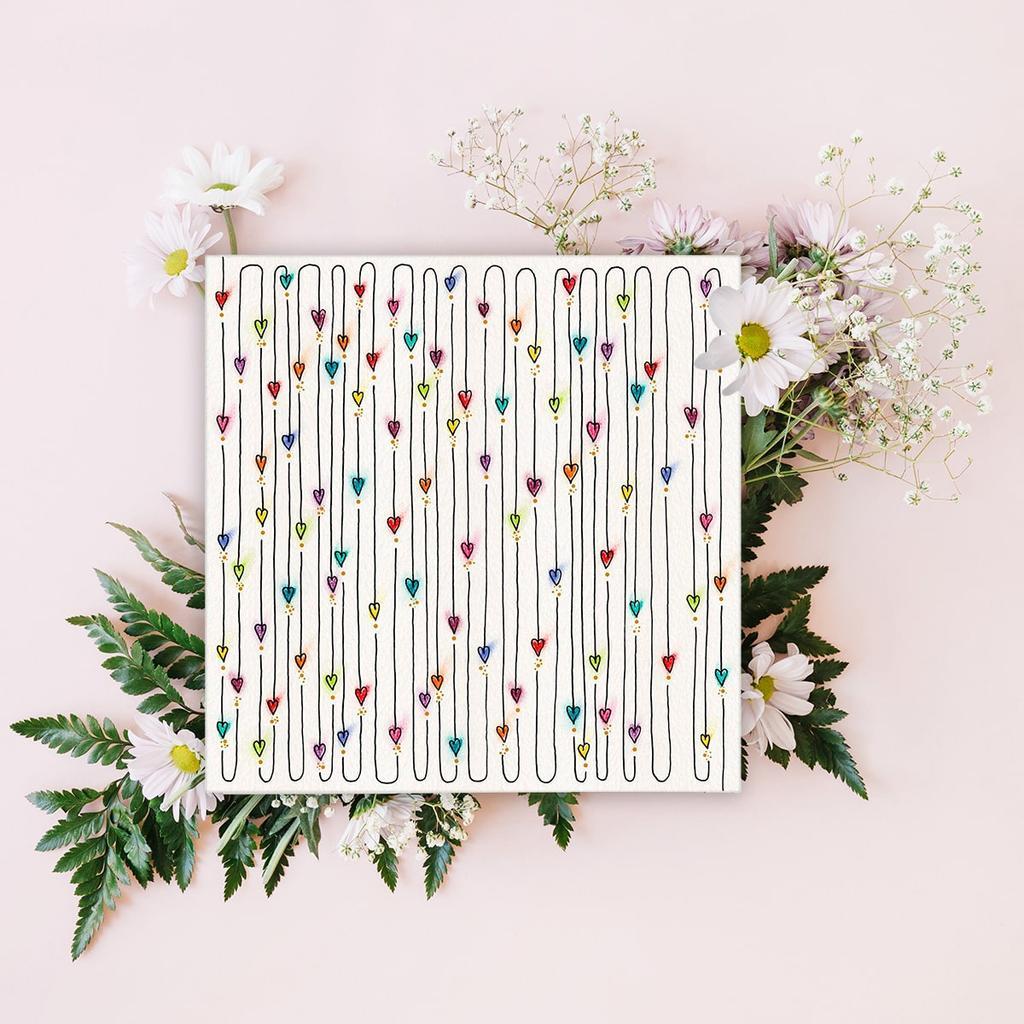 Bezaubernd illustrierte Grußkarte, ideal für enge FreundInnen, zum Geburtstag, zur Vermählung, zum Valentinstag, als Hochzeitsgeschenk oder einfach, um Deiner Liebsten / Deinem Liebsten eine Freude zu machen … Schicke Deiner Lieblingsperson ganz viele Herzen Sag’ ihr, wie wundervoll du sie/ihn findest und überschütte sie mit bunter Liebe.