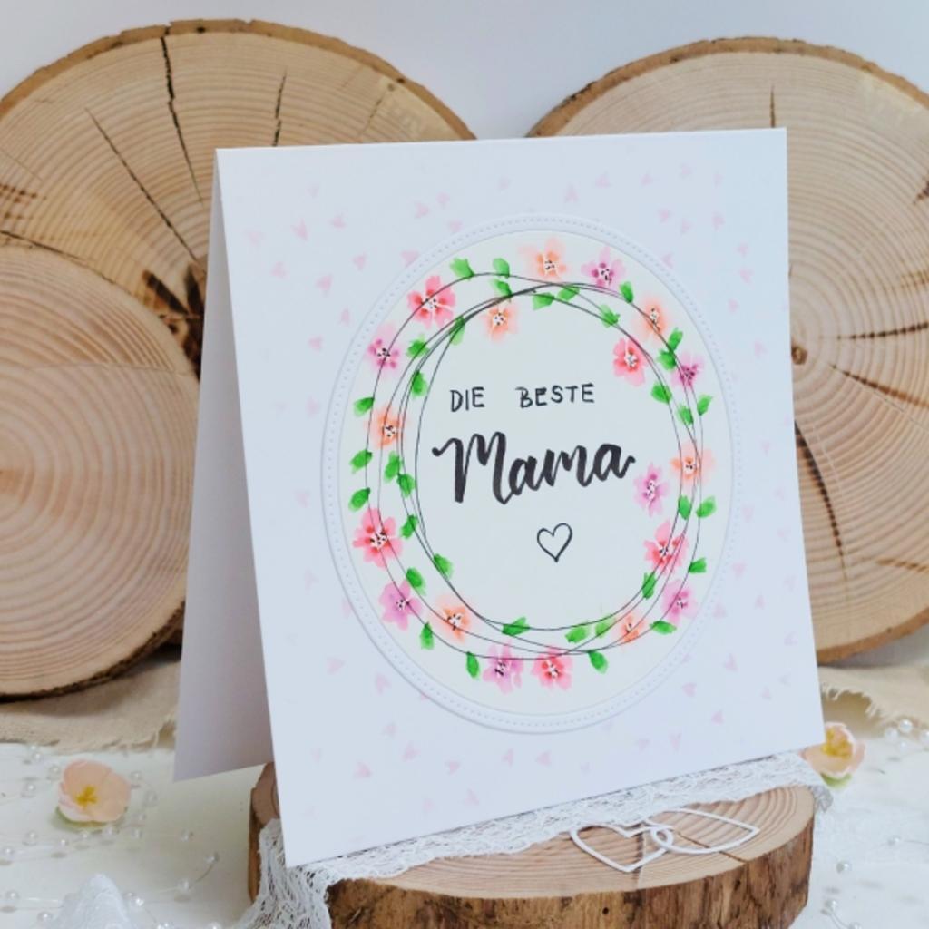 Eine von Hand bemalte und beschriebene Karte für die liebe Mama!
