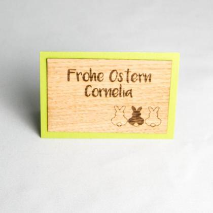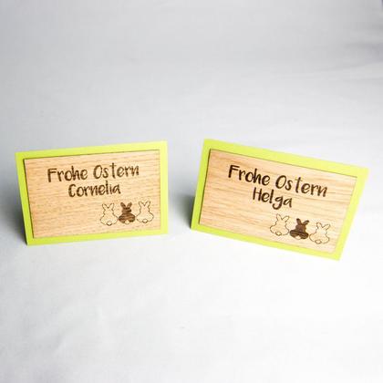 Der Schriftzug "Frohe Ostern" und die Häschen wurden mit dem Laser hineingebrannt.