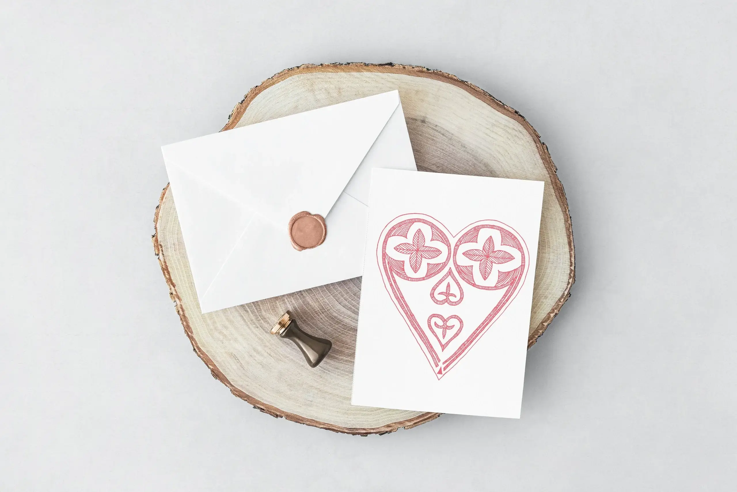 Diese handgezeichneten Illustrationen sind von antiken Holz- und Schmuckarbeiten des skandinavischen Sámi-Volkes inspiriert und passt im minimalistischen Stil gut als skandinavisch-inspirierten Weihnachtsgruß.