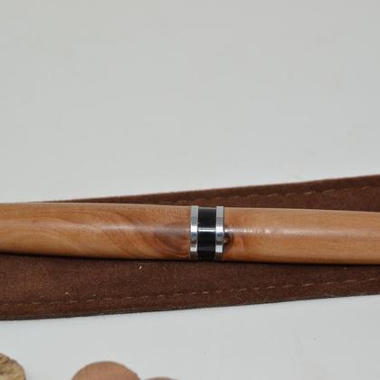 Handgearbeiteter Drehkugelschreiber, verchromt und handgefertigt aus österreichischem Apfel-Holz.