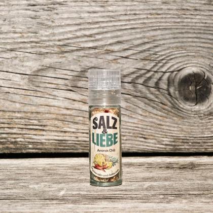Steinsalz mit Bio-Ananas und Bio-Chili in der wieder befüllbaren 80g Mühle.