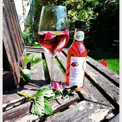 Der Rosenblütensirup besticht durch seine markant leuchtend rote Farbe und eignet sich hervorragend für Mischgetränke, Cocktails und schmeckt auch herrlich zu Eis. Das fein duftende Aroma der Blume der Liebe – die Rose – lässt sich im Sirup schmecken und macht den Genuss erlebbar. – Spür den Genuss in dir -