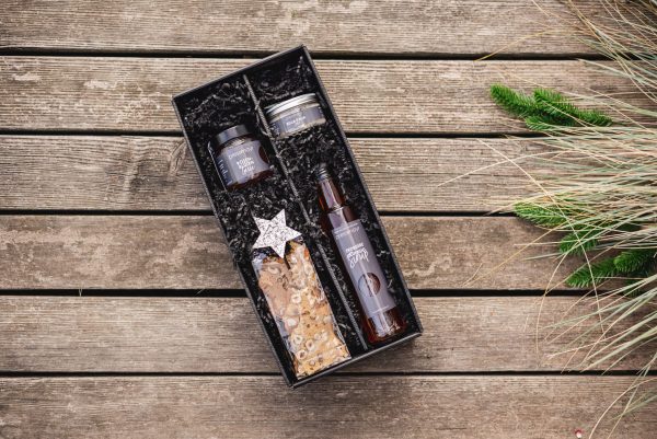 Mit diesem stimmungsvollen, weihnachtlich dekorierten Geschenkpaket machen Sie bestimmt jedem Genießer eine Freude.