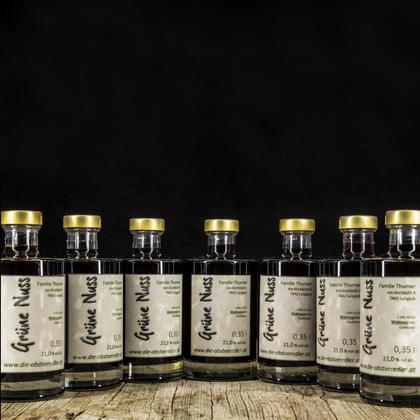 Dieser dunkelgrün bis schwarz schimmernde Edelbitter erhält seinen Namen von den grünen, unreifen Walnüssen. Diese, um das Hochfest der Geburt Johannes des Täufers, unreif geernteten Nüsse sind die Basis für den gleichnamigen Likör.