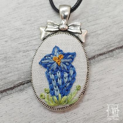 handgestickter Anhänger mit Enzian, oval