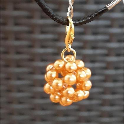 Handgefädelter Kugelanhänger (ca. 1,5 cm DM) mit (Titanium-) Glaswachsperlen und goldfarbigen Karabiner aus Messing mit hochwertiger Galvanisierung (mit echtem Goldanteil, (ca. 2,5 cm lang);