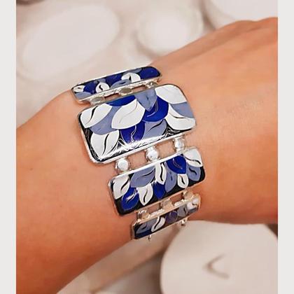 Armband „Blätter“ von Cloisonne Enamel,Handarbeit, Unikat,Silber