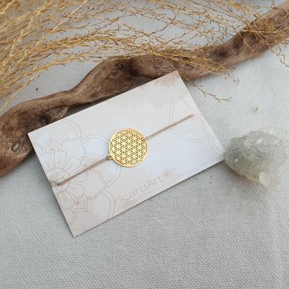 Armbänder aus gewachstem Makrameegarn (strapazierfähig & wasserabweisend) mit Lebensblume aus hochwertigem, nickelfreiem Messing (16mm)