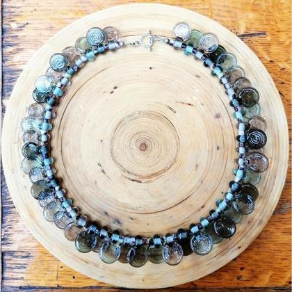 aus handgefertigten Glasperlen in grau transparent.