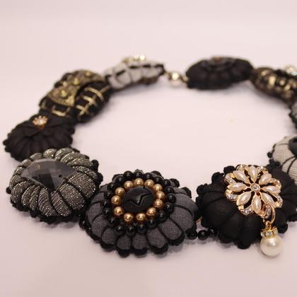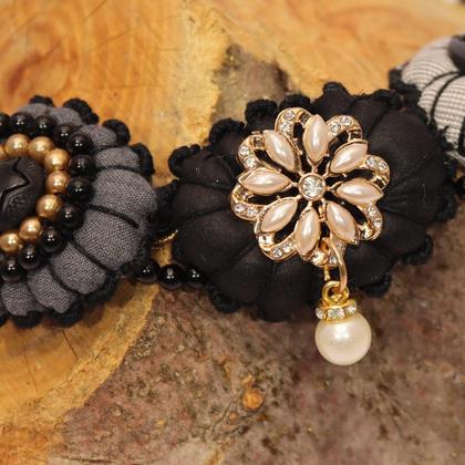 Die "Textiljuwelen" glänzen mit Leichtigkeit. Hier geht die Eleganz nicht zu Lasten des Nackens der Trägerin. Die handgenähten Pölsterchen sind federleicht und unterschiedlich verziert & gestaltet.