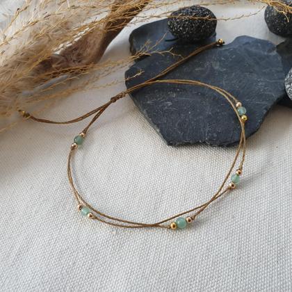 Zarte, zweireihige Edelsteinbändchen mit natürlichen Aventurinperlen (4mm)