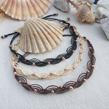 Von Hand gefertigte Fußkettchen aus gewachstem Makrameegarn (strapazierfähig & wasserfest)