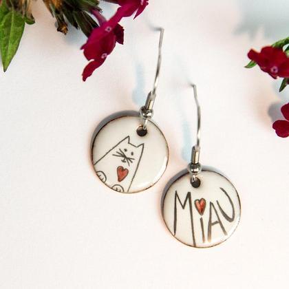 Zum ShopEmaille Ohrringe mit Katzen, Katzen Ohrringe, Ohrringe rund MIAU