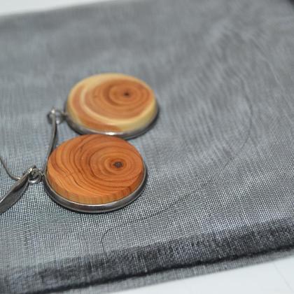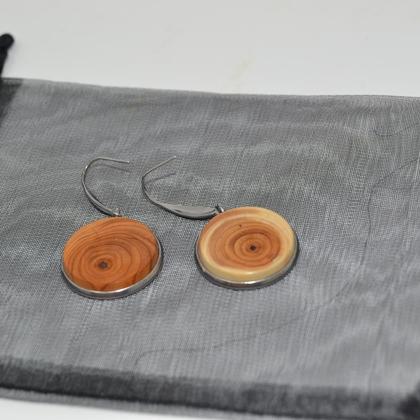 Ein wunderschönes paar Hängeohrringe aus österreichischem Eiben Holz in Edelstahlfassung. Wenn Sie 2 wunderbare Unikate an Ihren Ohren