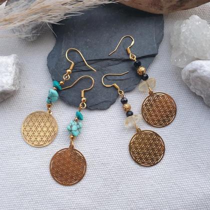 Zum ShopLebensblume Ohrringe Türkis/Citrin-Lava