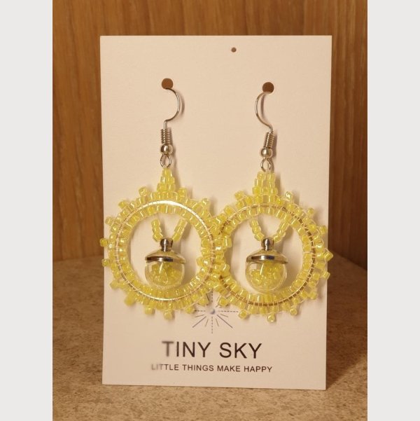 In der Mitte dieses besonderen Ohrring ist eine kleine Glaskugel mit den kleinen Perlen befüllt.