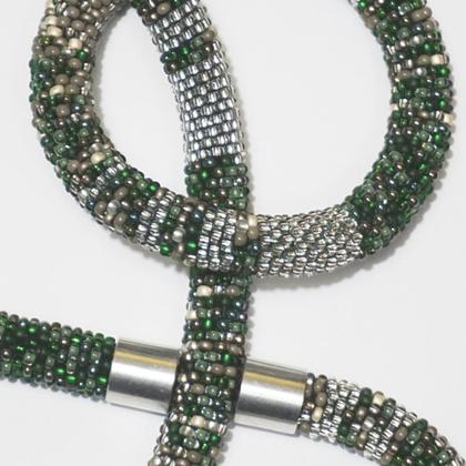 gehäkelte Glasperlen Halskette mit Aluminium Magnetverschluss und Armband im Set.