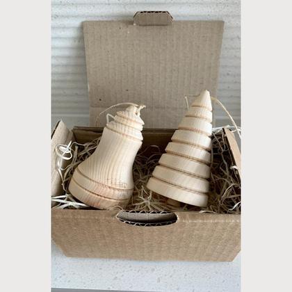 2er Set bestehend aus Glocke und Baum. Aus Zirbenholz handgedrechselt, naturbelassen, Spagat zum aufhängen, Figuren ca. 8 cm hoch
