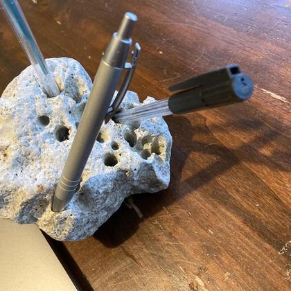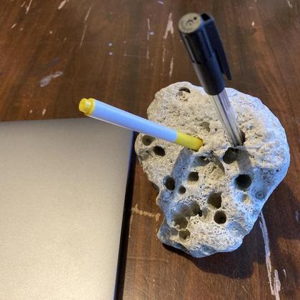 Natürlicher Lavastein mit Löchern, die gerne Stifte halten. Oder auch Pinsel, zum Beispiel.