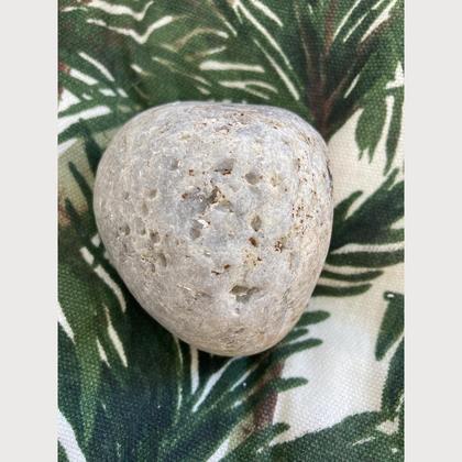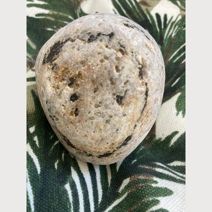 Dieser rundliche Stein ist ein sehr liebes und auch ein wenig gruseliges Unikat: mit seinem Gesicht, das mich jedes Mal anzulächeln scheint, wenn ich draufschaue. Oder ist das doch eine Träne da unterm Auge? Und: Ist dieses Lächeln überhaupt freundlich? Fakt ist: Rundum glitzert dieses Steingesicht auch noch so magisch. Einigen wir uns auf eine Fee, die darin eingeschlossen ist? Ja? Nein? Hm. Dann: Adoptiere den Stein und mach dir deinen eigenen Reim drauf :-)