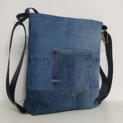 Materialien: Jeans, Baumwollstoff, Gurtband, veganes Leder
