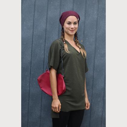 Das rote Kunstleder ist wasserabweisend und vegan.