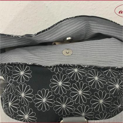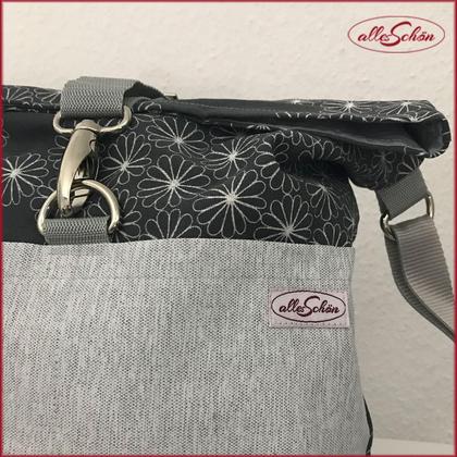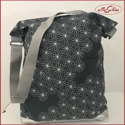 Umhängetasche in Grau mit Blumendruck und vielen verspielten Details