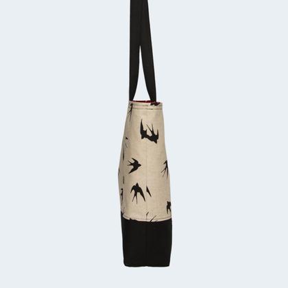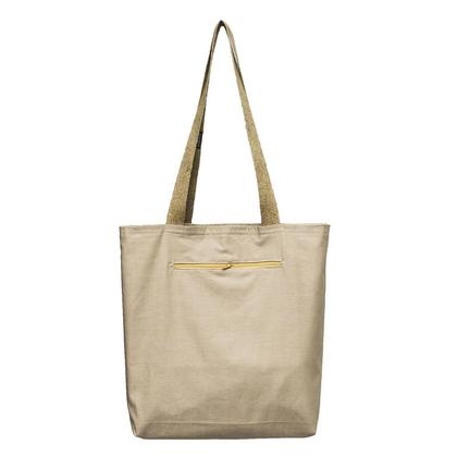 Die Tasche hat ein Innenfutter aus 100 % Baumwolle in beige und ist mit einer Reissverschlusstasche (23x20 cm) versehen.
