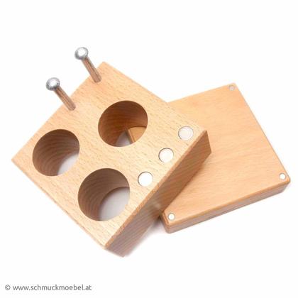 An den drei Magneten haften metallische Dinge wie Haarspangen, Pinzette oder Nagelschere.