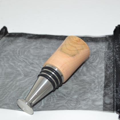 Der Weinstoppen wird mit Stoff-Tasche geliefert.