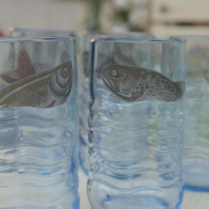 Die Motive werden bei etwa 750° auf die Glasoberfläche eingebrannt, das bringt mit sich, dass sich jedes Glas zum unverwechselbaren Unikat verformt.