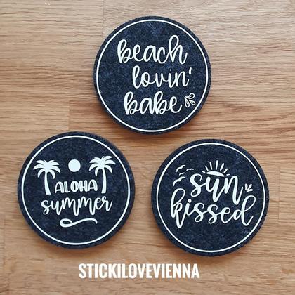 Du bekommst hier das Set Summervibes mit insgesamt 6 Stück Untersetzer mit den Schriftzügen