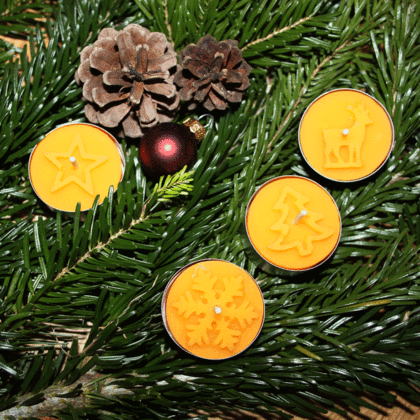 4 Teelichter Weihnachten modern aus Bienenwachs