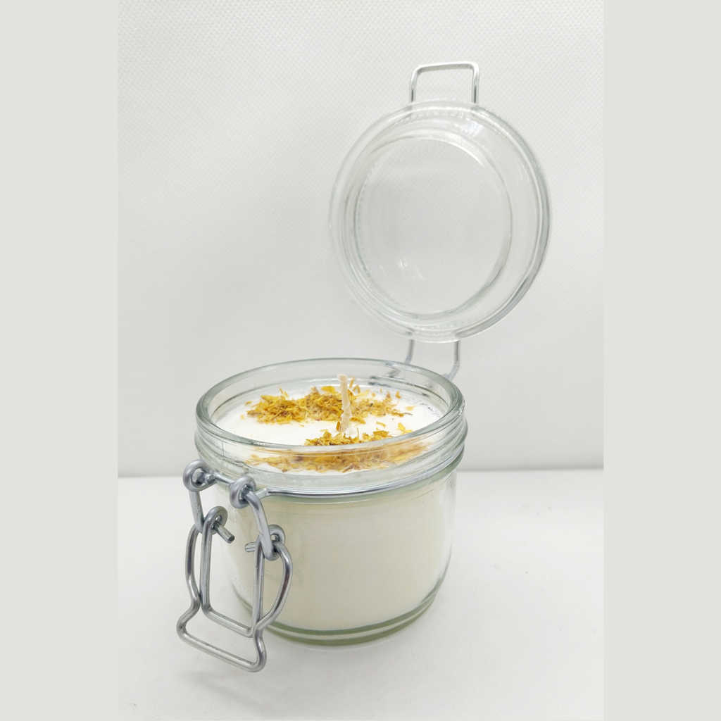 Dank einer eigenen Mischung pflanzlicher Wachse mit Auszügen und Tinkturen hat diese Kerze eine besonders lange Brenndauer von bis zu 50 Stunden.