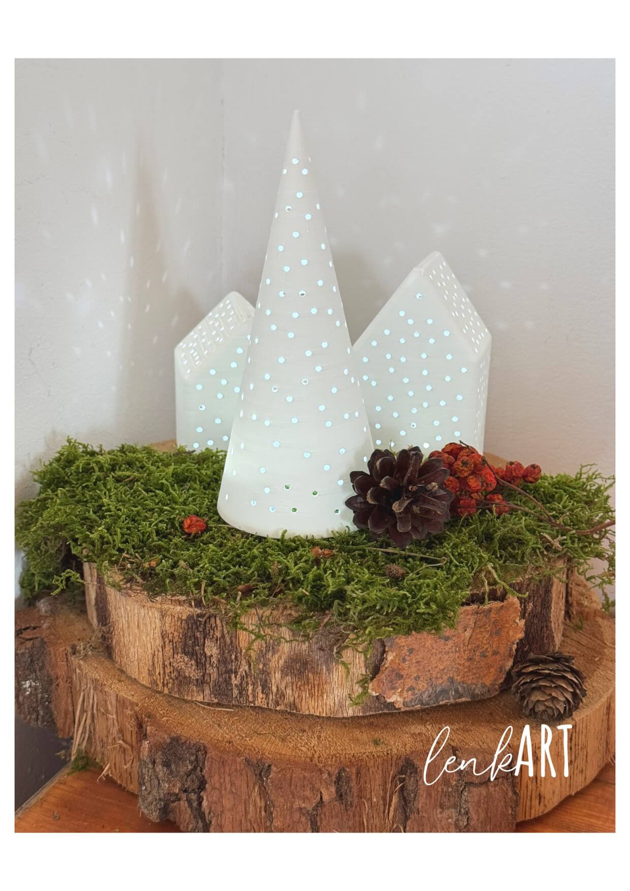 Dieser fein gearbeitete, 3D-gedruckte Baum mit gelöchertem Muster verleiht deiner Wohnung eine gemütliche Weihnachtsatmosphäre. Es lässt sich ein LED-Teelicht darunterstellen, wodurch ein schönes Lichtspiel entsteht.
