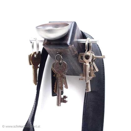 Ein Paar Schlüssel haftet magnetisch an der Unterseite, an der Seite können weitere Schlüssel oder Sonnenbrillen aufgehängt werden.